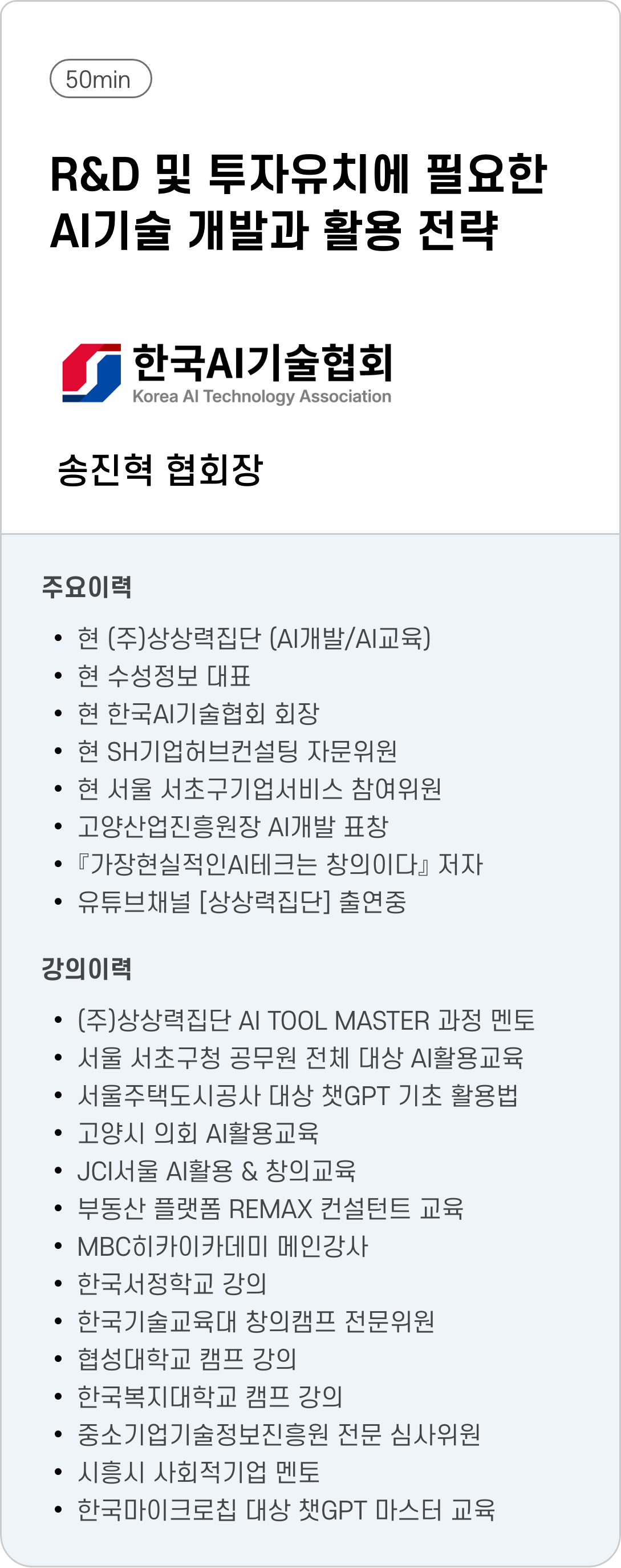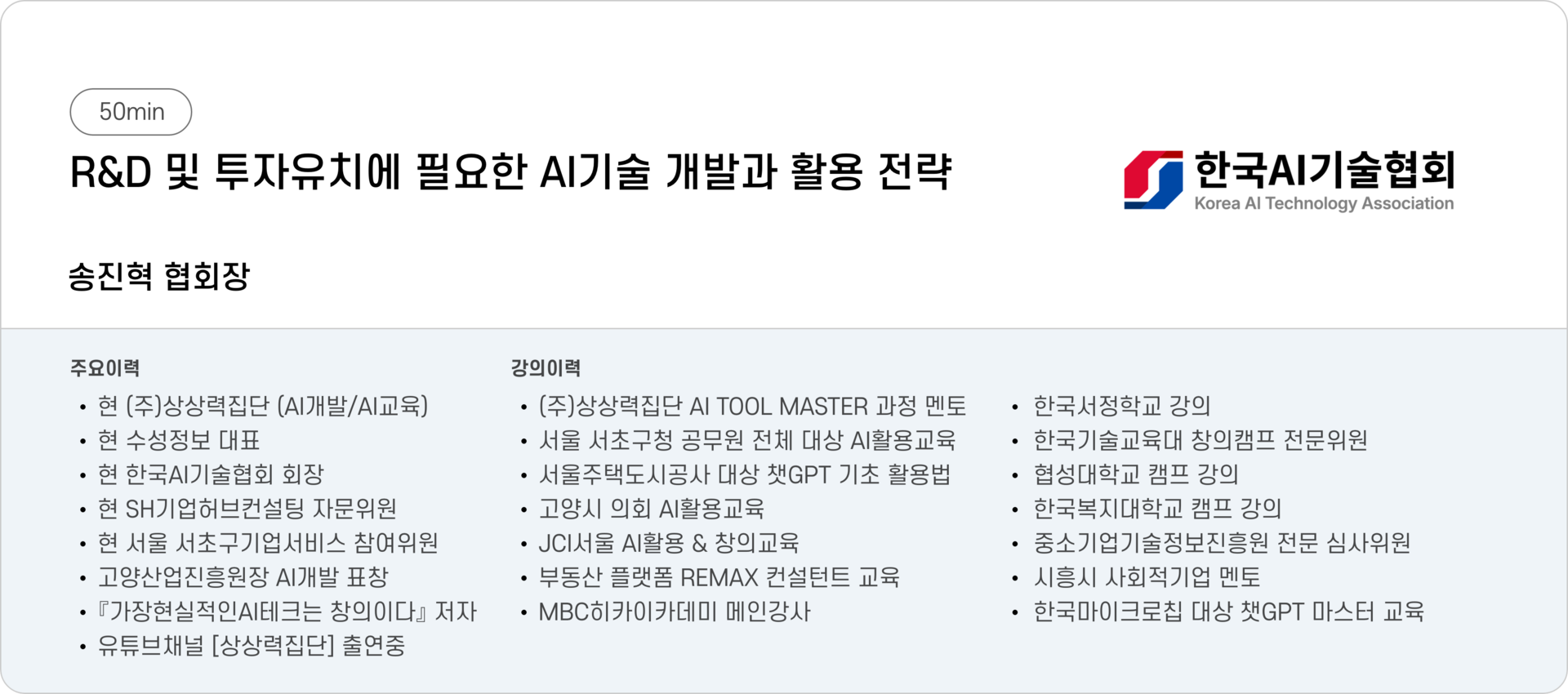AI 전문가 특강 (‘60)창업기업 대표님이 꼭 알아야할 AI 활용 인사이트 정보 제공 기업의 역량과 기업가치 강화