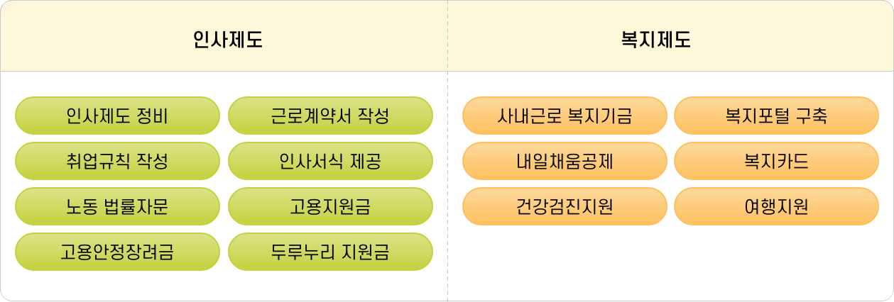 기업 규모에 맞는 인사노무관리 전략과 복지제도를 제공합니다.